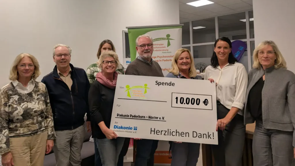 Mit einer großzügigen Spende in Höhe von 10.000 Euro wird die wichtige Arbeit unserer Krebsberatung im Kreis Paderborn nachhaltig unterstützt.